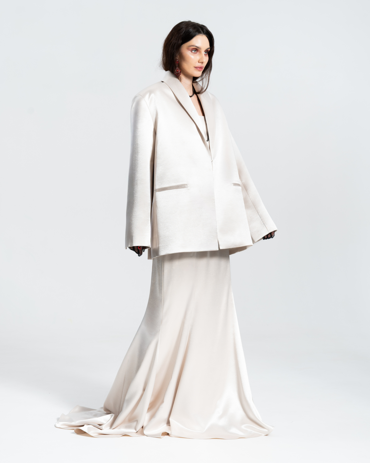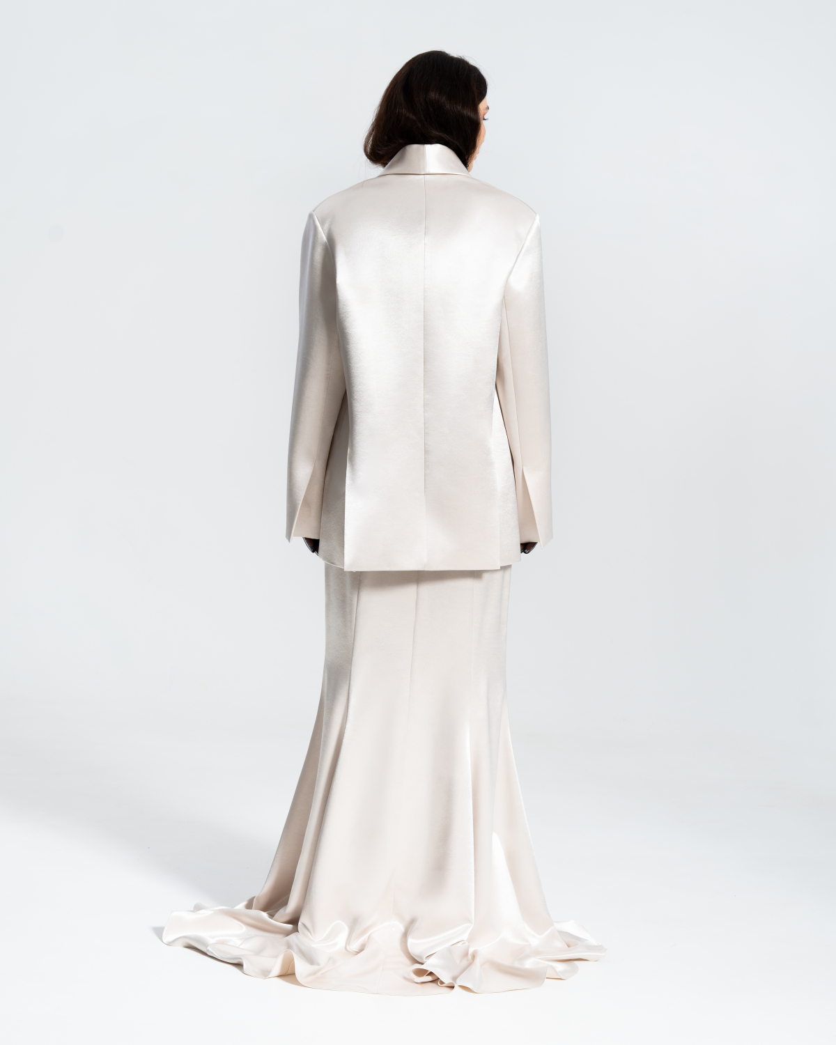 EDGE Юбка светлая "Эстель" со шлейфом из жемчужного Сатина