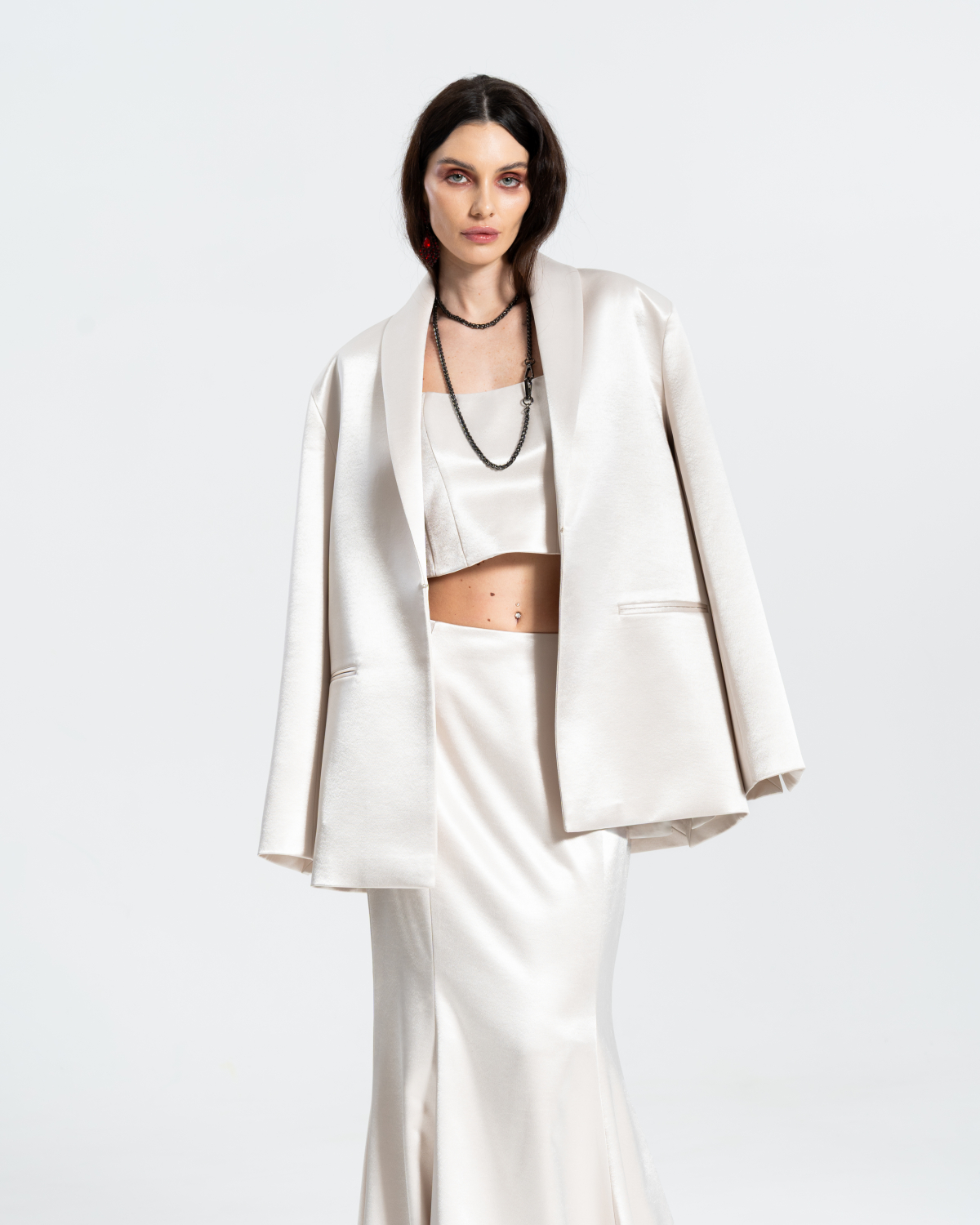 Лаконичный и роскошный: светлый смокинг-жакет «Эстель» — must-have для тех, кто выбирает элегантность без компромиссов.