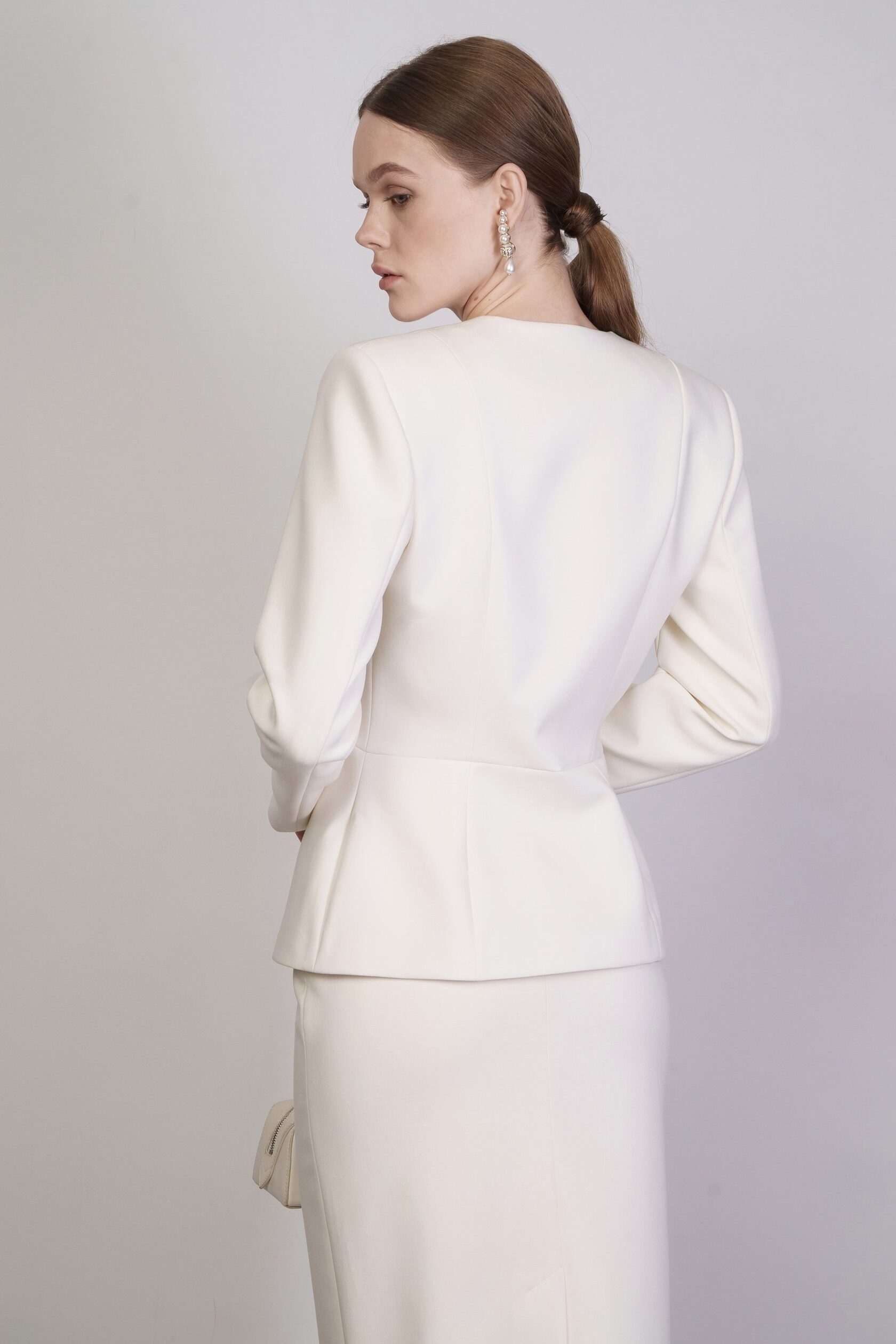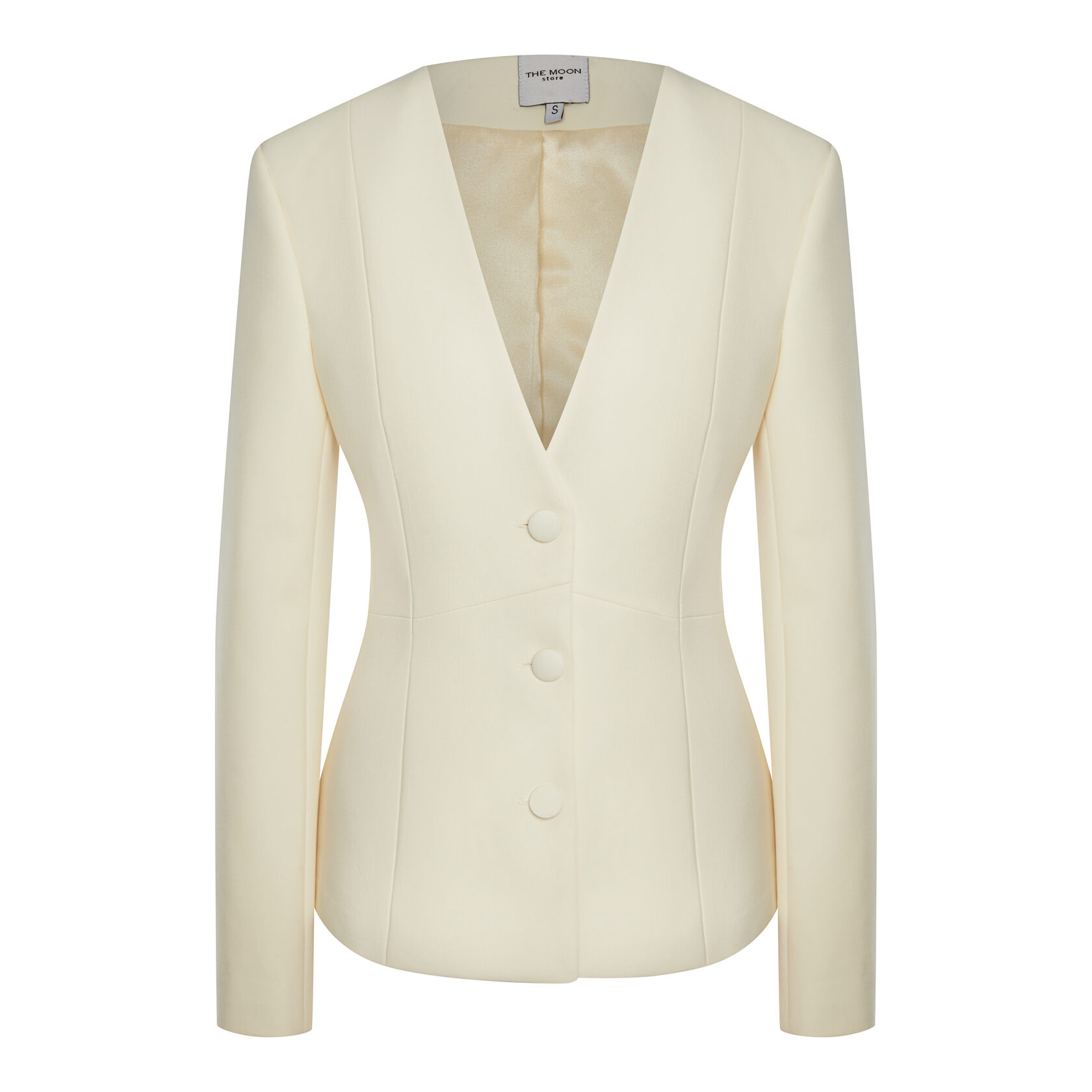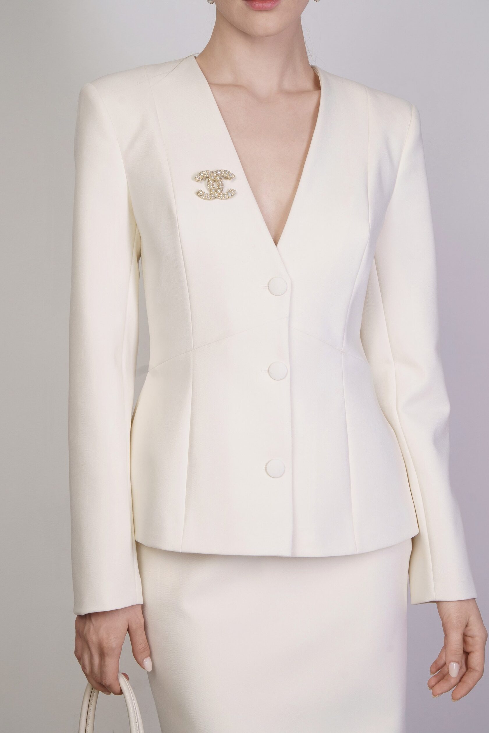 Приталенный жакет с отрезной линией идеально подчеркнут талию, а глубокое декольте добавит перчинки в спокойный образ