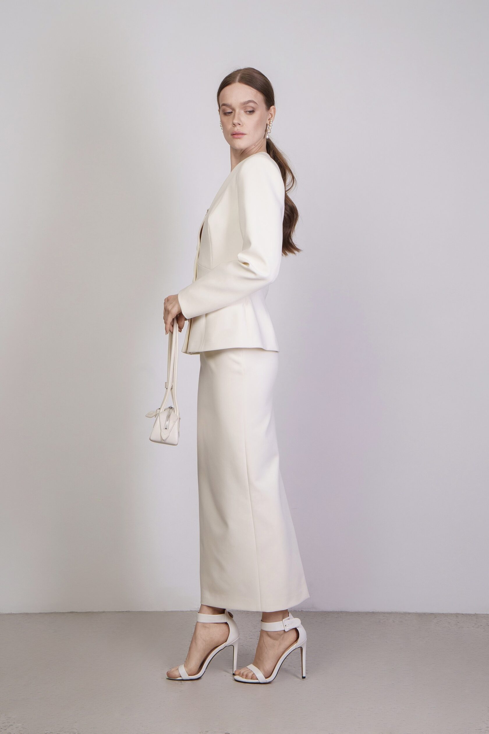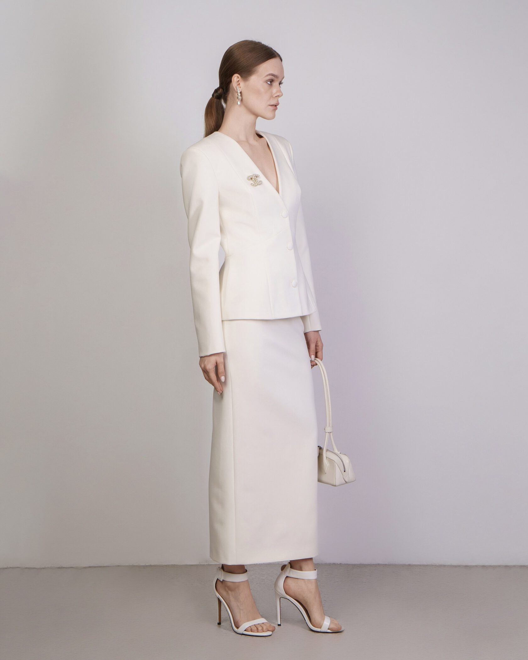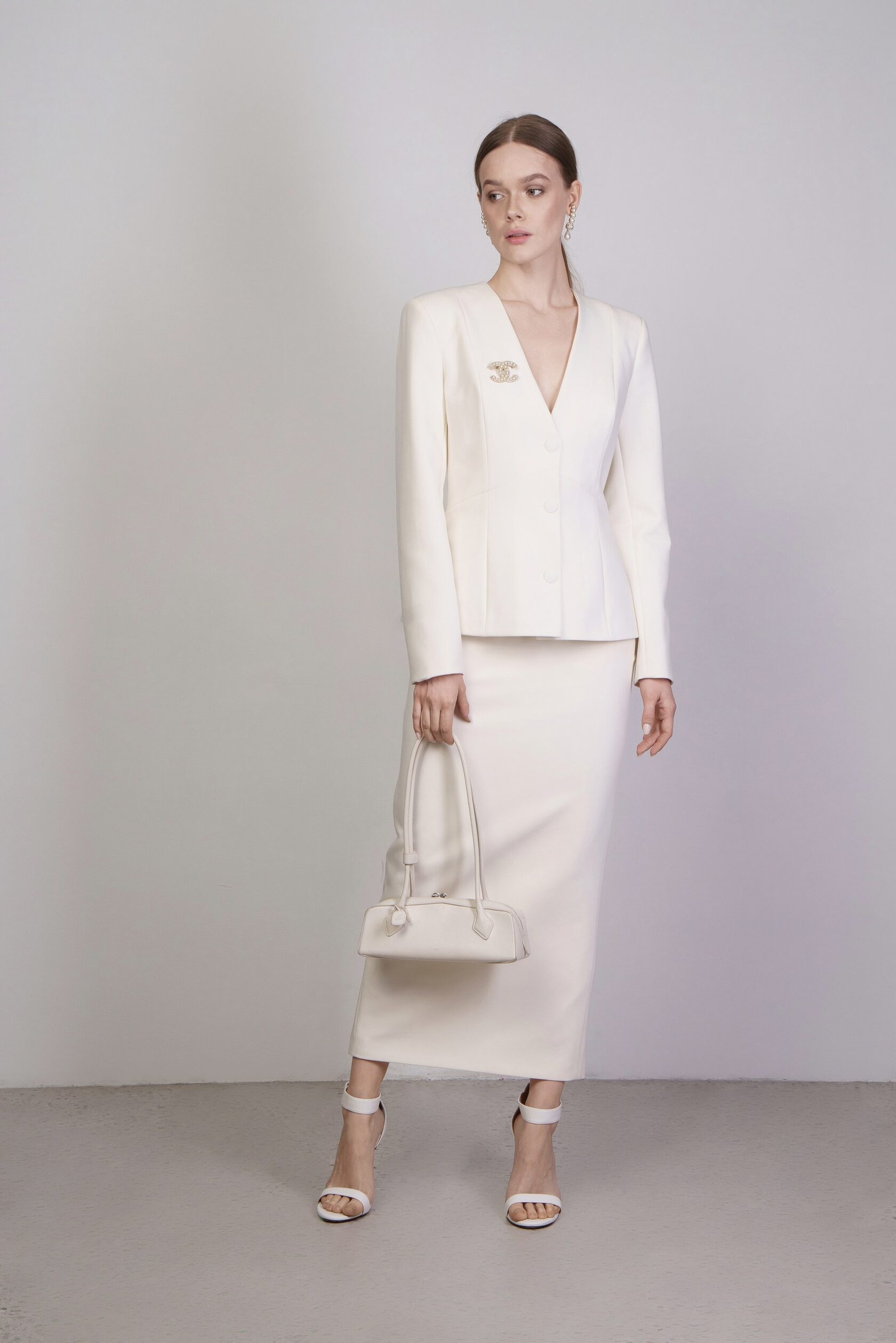 Приталенный жакет с отрезной линией идеально подчеркнут талию, а глубокое декольте добавит перчинки в спокойный образ