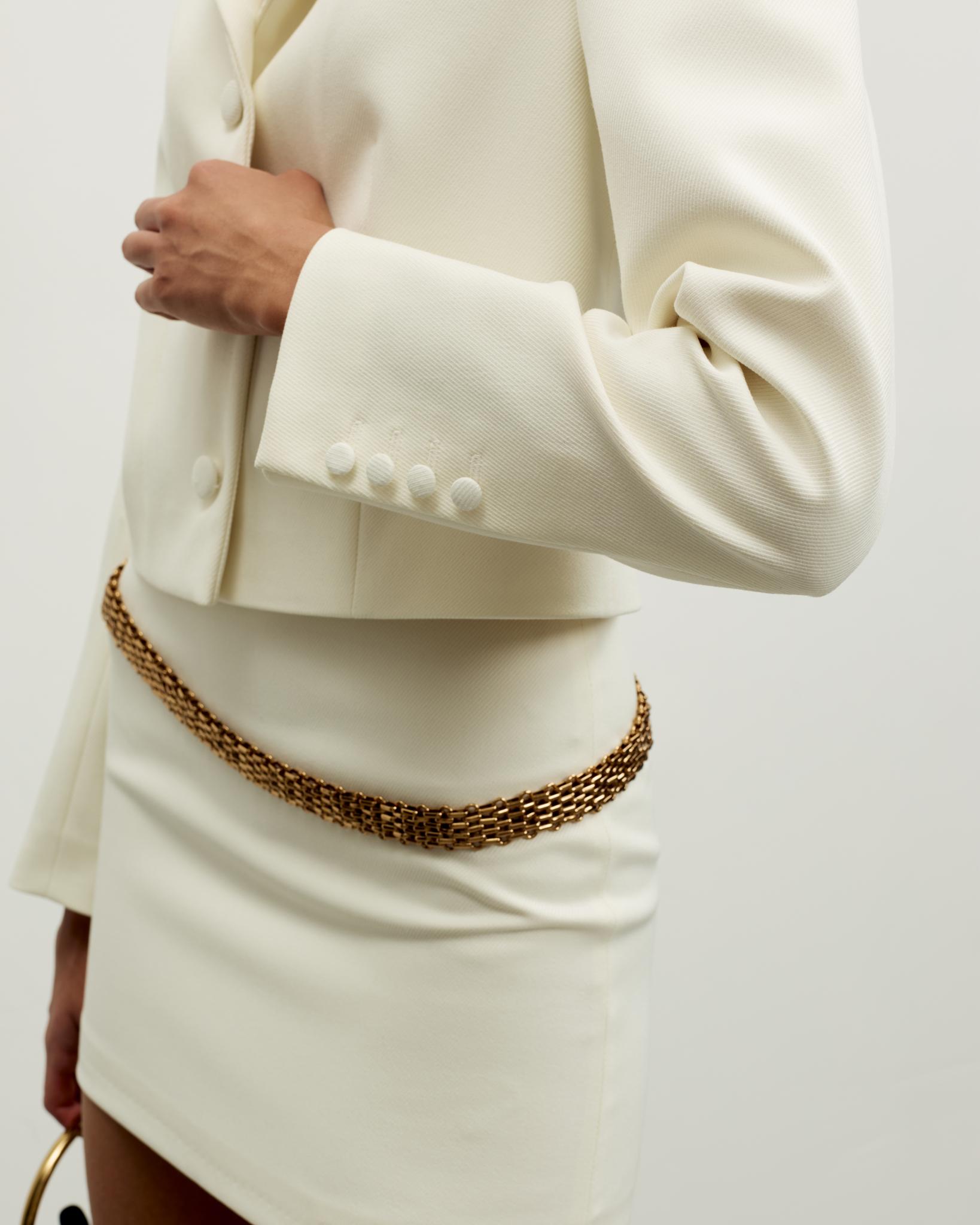 Жакет выполнен на полноценной подкладке для максимального комфорта и имеет аккуратный приталенный крой.