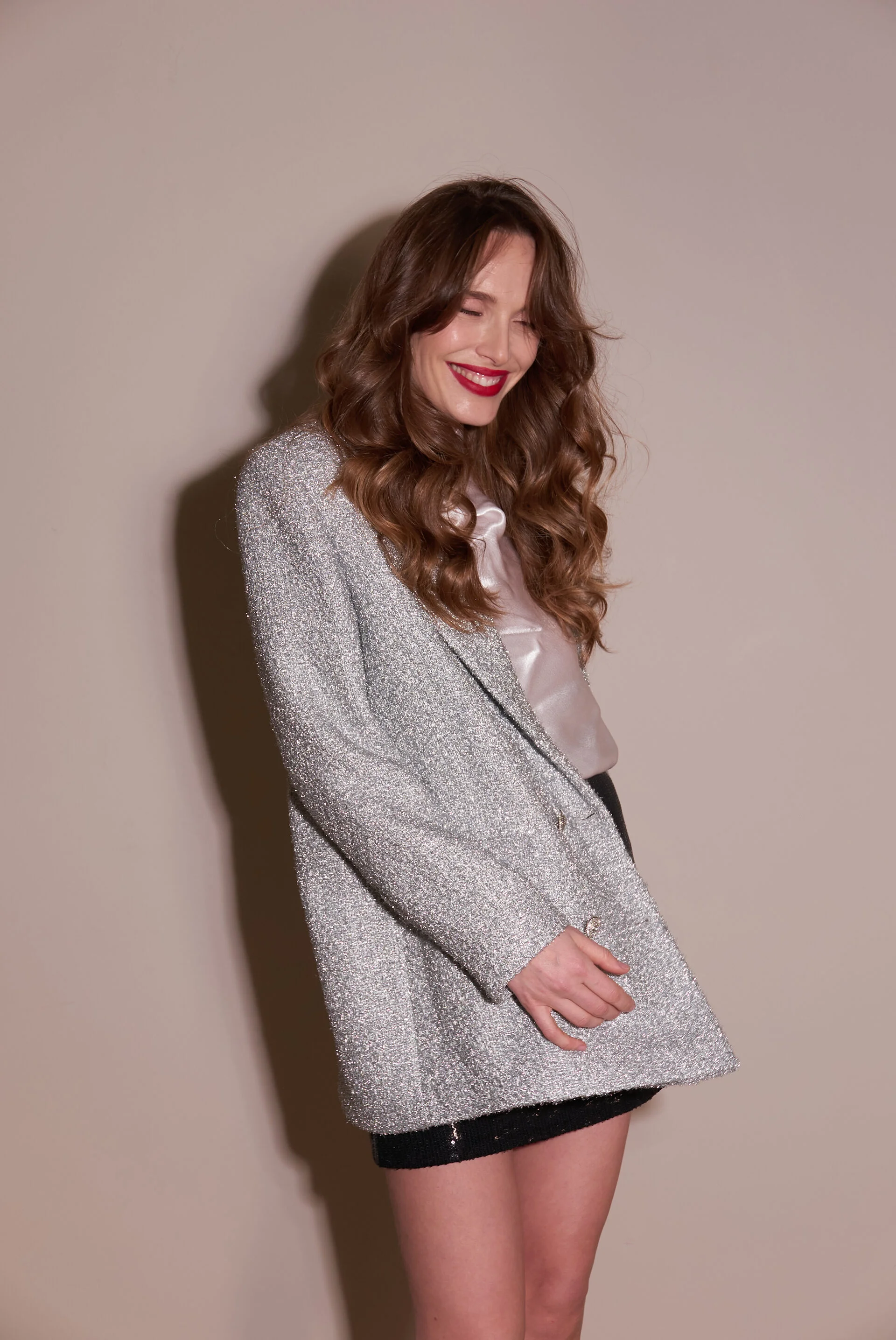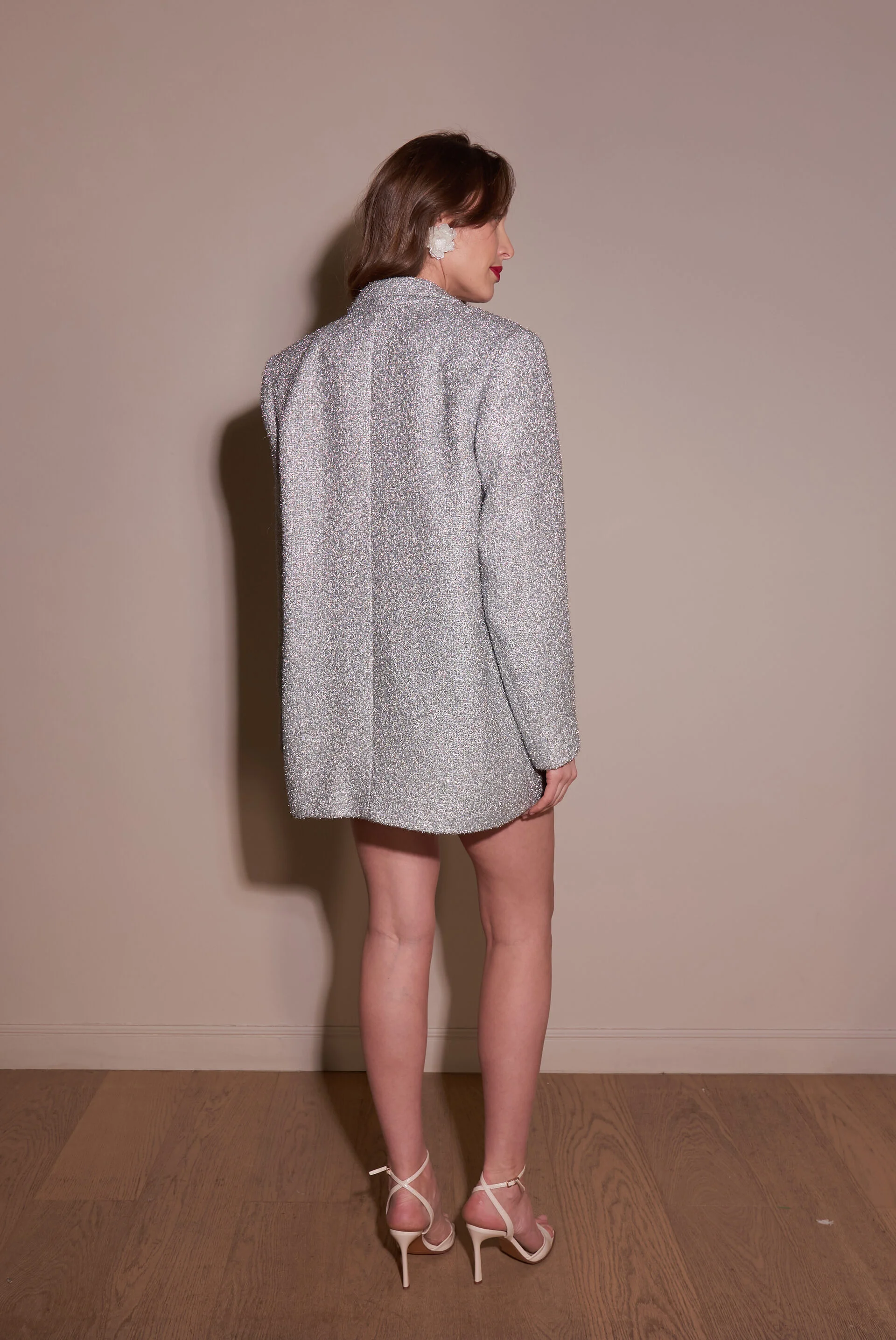 Платье-пиджак на запах, выполнено из атласной ткани, подойдет как для похода в ресторан на романтическое свидание, так и на стильную вечеринку с подругами.