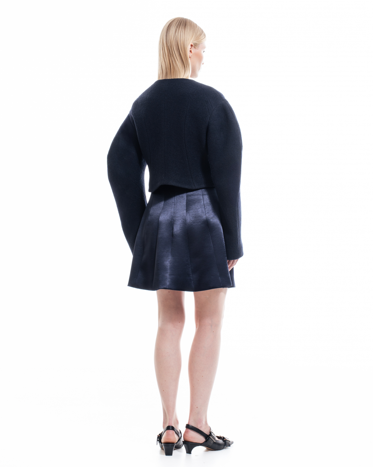 Милый укороченный жакет из буклированной шерсти Петра, создаст множество особенных образов. Составит прекрасный комплект с юбкой макси Евгения, и подойдет практически к любому платью из коллекции.
