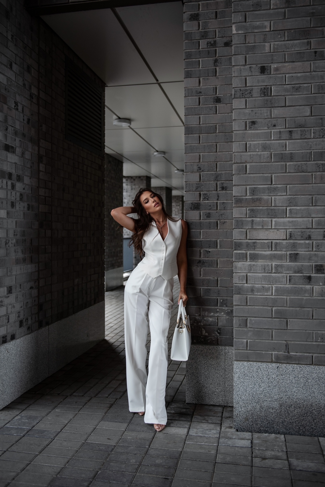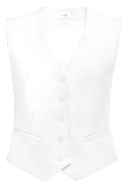 Жилет из костюмного крепа на подкладе с глубокой зоной декольте.