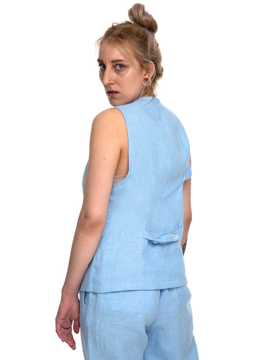 Классический жилет из джинсы со шнуровкой по спинке на пуговицах